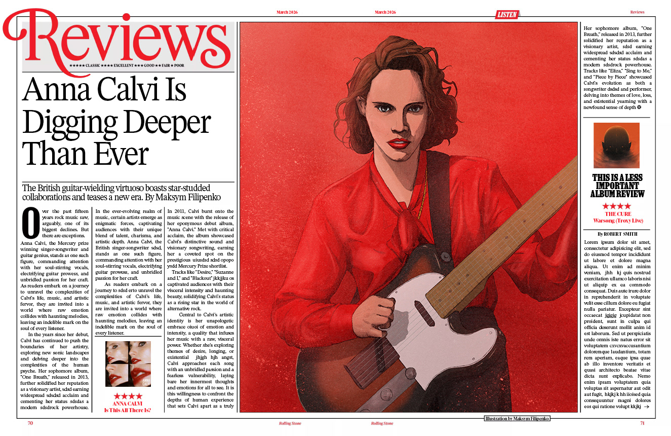 The portrait was specifically created to fit into the Rolling Stone magazine's Reviews section. Below is a speculation of how this might look. Enjoy!