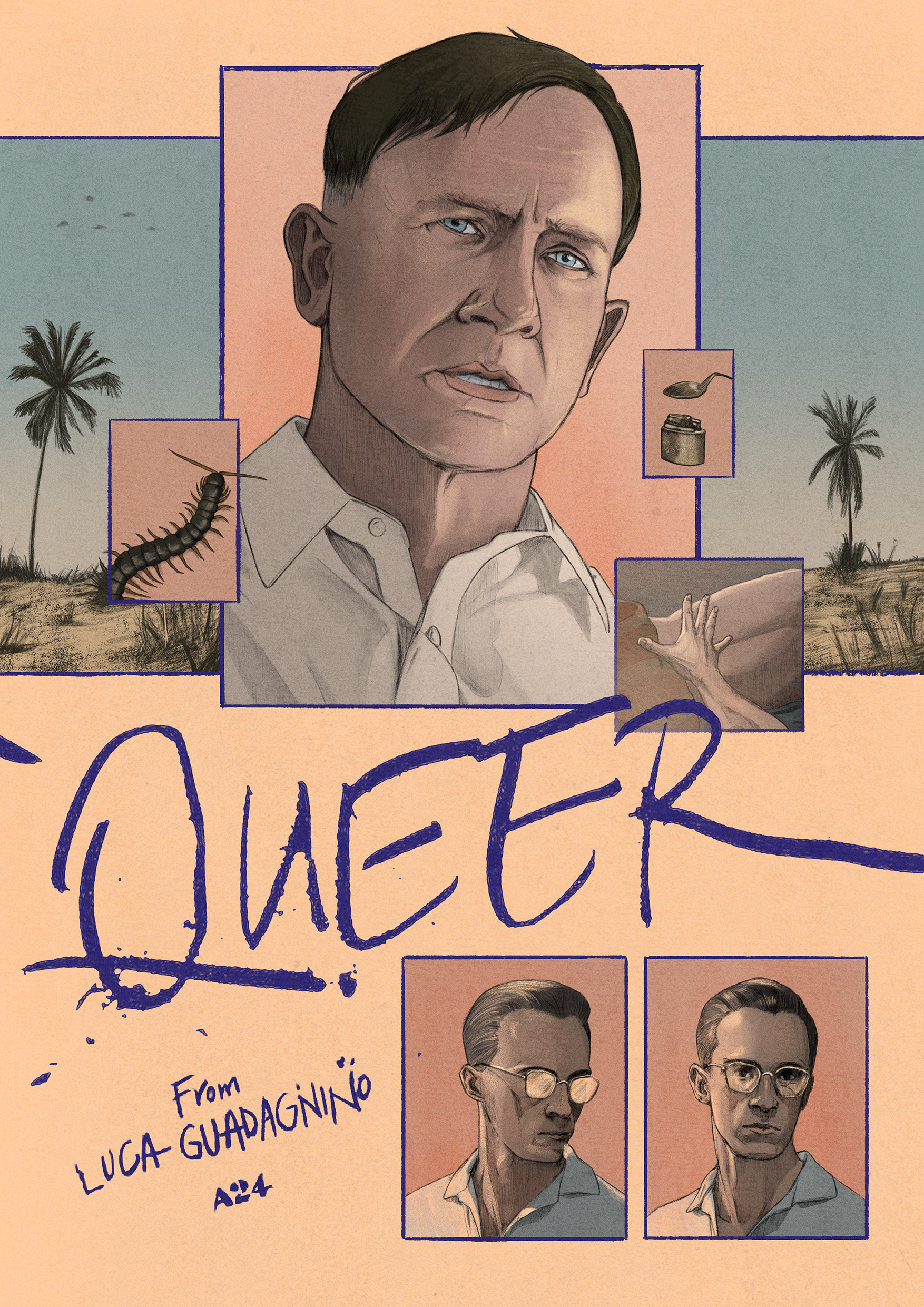 My illustrated poster for Luca Guadagnino's QUEER (personal work).
