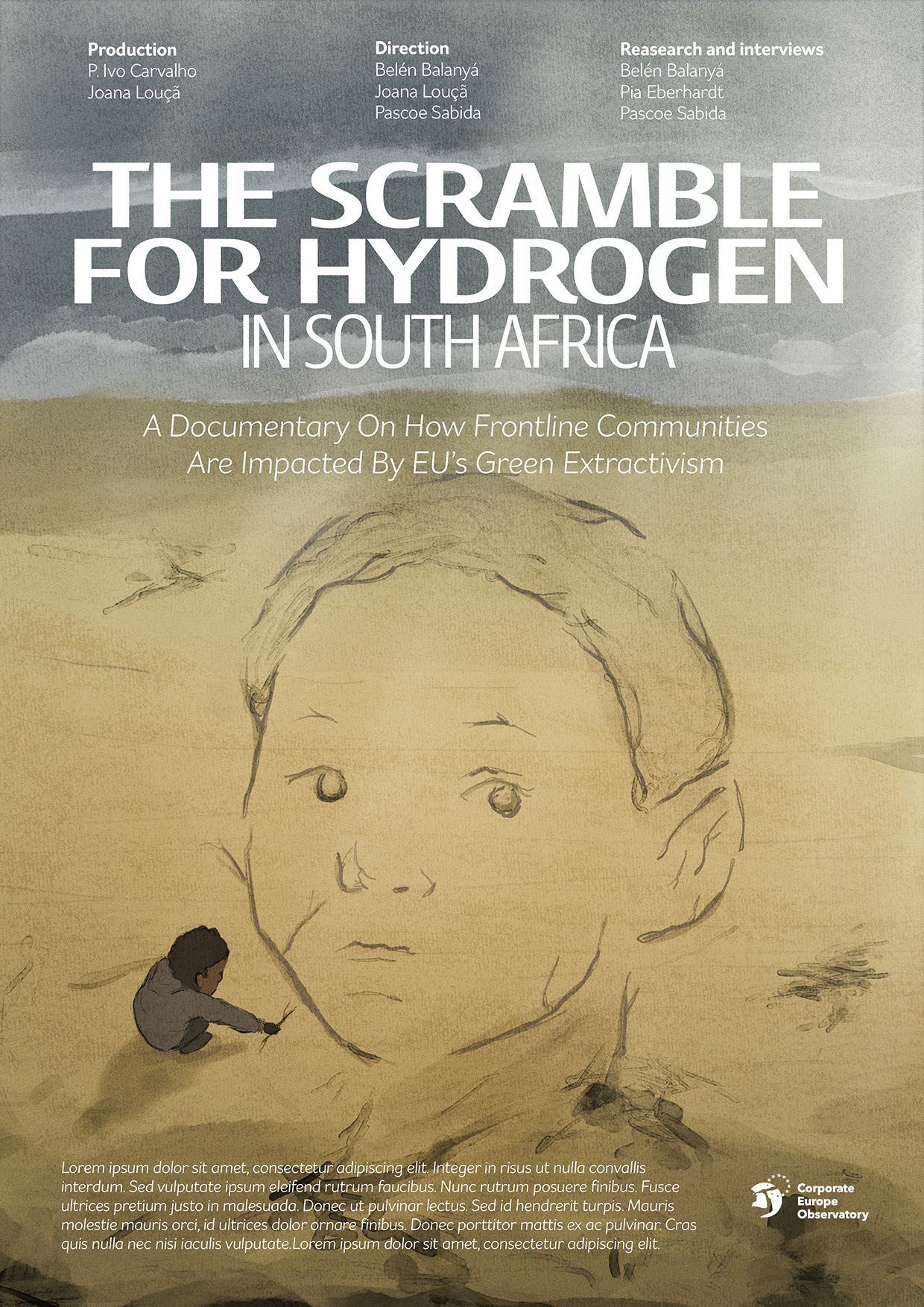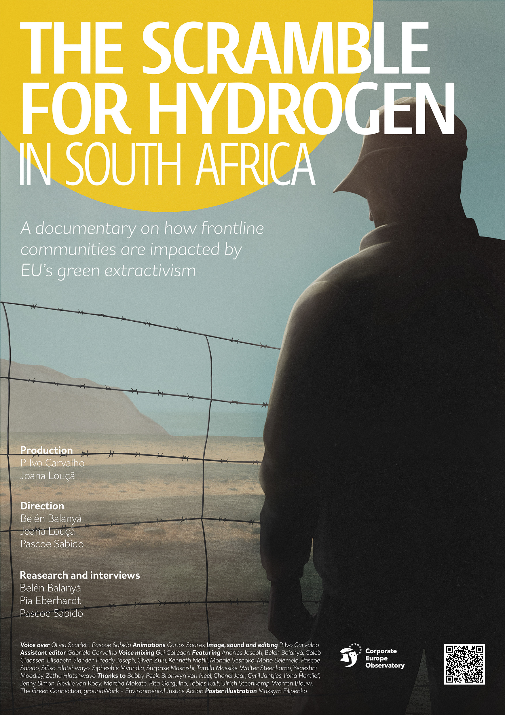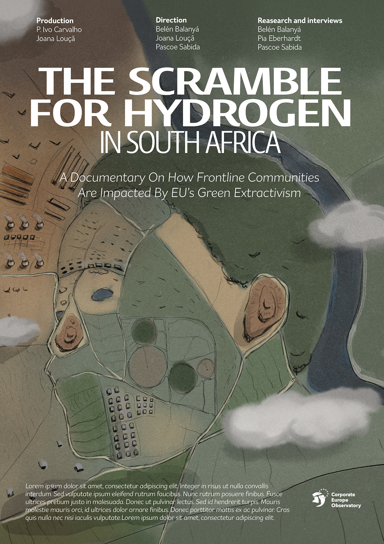 My poster illustration and design for a Corporate Europe Observatory documentary "The Scramble For Hydrogen In South Africa".